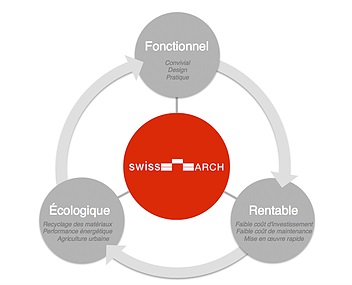La société SWISS-ARCH a été créée à la suite d’une réflexion engagée à apporter des solutions durables dans le domaine de la construction selon 3 axes principaux: écologique, fonctionnel et rentable.